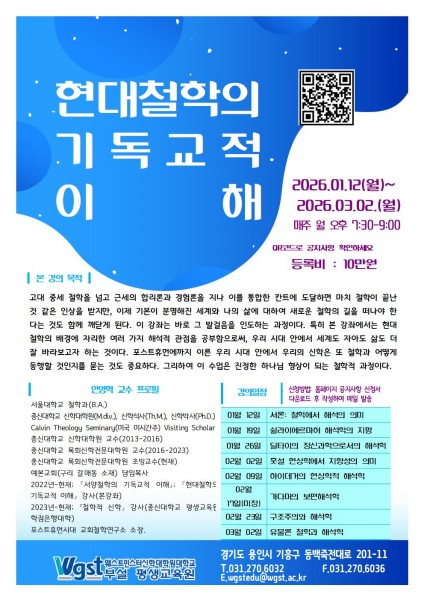현대철학의 기독교적 이해과정을 아래와 같이 모집합니다.