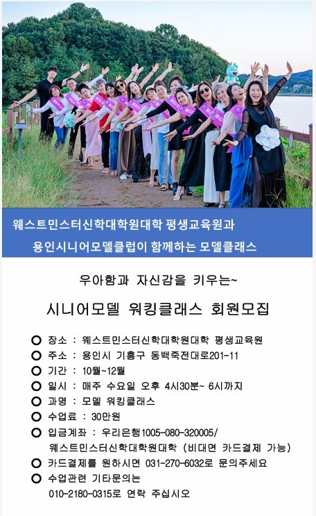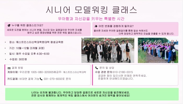 25년도 가을학기 시니어 모델 초급반을 아래와 같이 모집합니다.